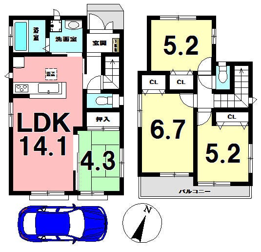 D号棟間取り 公道に面した角地 5,290万円